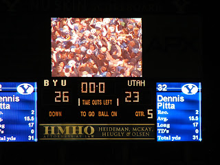 Mom Hale has had a tradition to buy some of the boys in the fam tickets to the BYU-UofU game every year for their birthday. So this year she got tickets for the spouses also. We had the best time. BYU won!!! It was awesome!!! Very intense!! Kev said he lost 10 years off his life because of this game. And Brett was on guard from last year with all the UofU fans. He didn't have the best experience with them last year. So he was loving how BYU won. Kev and Tenille did all the tailgating fun before the game and the rest of us got there just in time. So here are pictures of an awesome day!!! Thanks Mom for a great time.